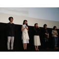 2016年9月17日、東京・新宿ピカデリーにて映画『聲の形』の初日舞台挨拶が行われた。石田将也役の入野自由、西宮硝子の早見沙織、植野直花役の金子有希、佐原みよこ役の石川由依、川井みき役の潘めぐみ、真柴智の豊永利行、小学生時代の石田将也役の松岡茉優、山田尚子監督の8名が登壇し、作品への思いや裏話を語った。いじめや聴覚障害などのセンセーショナルな要素も持ち合わせる今作だが、入野は監督との打ち合わせの際、今回の映画『聲の形』で核となる部分は “人とのつながり”であると伝えられたという。これを受けて入野は「将也を演じるにあたって迷ったときは“つながりたい”という思いを根底に持って演じることができました。」と語った。さらに、監督からは「大きな小動物が怯えているような感じ」という含みを持たせたアドバイスを受けたと明かし、自分なりにイメージを大事に膨らませて演じたと話した。松岡も山田監督から「(小学校時代の将也は)ハンバーグ!っていうかんじ」と一風変わったアドバイスを受けたそう。収録中に「ハンバーグ!」と実際に何度も叫んだというエピソードも披露し、会場の笑いを誘った。このように独特な例えを出して役者の想像力に任せることが多いという山田監督。その意図を聞かれると「まっすぐな答えを出してしまうと演じる方のイメージを固定してしまうと思うので、なるべくそうしています」とコメントした。早見は自身の演じた役について「一人の人間として、もがきながら立ち向かって生きている女性です。今回私はあまりアドリブは入れないようにしたのですが、画のすごく細かい部分で硝子がドヤ顔していたりと可愛らしい一面も描かれているので、注目して頂けると嬉しいです」と見どころをアピール。山田監督は早見が演じた西宮硝子について「こんなに本能と理性とが共存できているのはとっても魅力的です。良い硝子が生まれました」と笑顔を見せた。松岡が演じた小学生時代の石田将也は、聴覚障害を持つ硝子を手ひどくいじめてしまうという難しい役どころ。松岡は将也のいじめを肯定するわけではないと前置きをしつつ、「私も最初は石田将也ってなんて嫌なやつなんだと思いました。でも、彼の行動は見方を変えると面白いものを見つけた小学生の純粋な心の動きなんだと監督が教えて下さって、彼をとことん愛そうと決めました。」と役への心境の変化を語った。松岡の起用は、過去に松岡が演じたドラマの役を気に入った山田監督の熱烈なオファーによるものだったことが話題に上がると、松岡は声優として経験豊富な役者が多い中、自分が抜擢されたことに戸惑いもあったと吐露。それに対して入野は「苦戦されている部分もあったそうですが、映画『聲の形』のテーマでもある、もどかしくとも伝えたいという思いがシーンにバッチリはまっていました。」と語り、早見も「幼少期の将也と硝子で全てを曝け出して思いを伝えあうシーンで、私の声と松岡さんの声が重なってものすごいハーモニーが生まれたなと思いました」と述べ、太鼓判を押された松岡は胸をなでおろした様子だった。最後の挨拶では、入野が「全7巻の原作を2時間にするというのはとても不安でしたが、完成した作品を見て、ものすごく素敵な映画になったと感じました。漫画と表現は違うけれど一番大事な“つながりたい”という思いはばっちりフィルムに収まっていると思います」と噛みしめるように語り、初日舞台挨拶を締めくくった。映画『聲の形』9月17日より公開中配給:松竹(c)大今良時・講談社/映画聲の形製作委員会