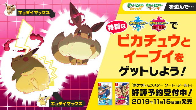また、キョダイマックスできる特別な「ニャース」や「ピカチュウ」、「イーブイ」をゲットできる早期購入特典、データ連携特典の情報も公開されましたので、ご確認ください。