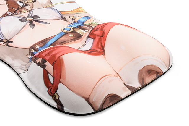 本商品は、プレイヤーを魅了してやまない「ライザの太もも」に着目した立体マウスパッドです。リストレスト部分が「太もも」にあたる、本商品のための新規金型を採用。約1,850gものジェルを太ももに使っており、その厚みから感触まで「ライザの太もも」が再現されています。
