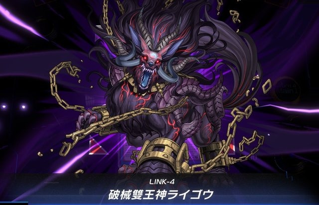 「イビルツイン」テーマに非常に親和性の高いリンクモンスターといえば、「破械雙王神ライゴウ」。リンクモンスターを含むモンスター2体、ということで簡単に「イビルツイン」の2人から登場してきます。よく出てくるので「配信の準レギュラーかな」と思ってしまうほど。