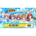 さらに、コラボ第1弾のコラボ召喚やクイズクエストも復刻し、パジャマ姿・私服姿・水着姿・浴衣姿・制服姿・ウェディングドレス姿など、6つのイラストで好きな服装の五つ子が楽しめる。