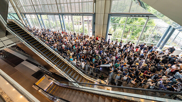 同イベント会場は交通の利便性を優先する範囲で最大規模なのですが、すでにキャパシティーオーバーなのでは?というほど来場者が多く、特に土日は3階が会場なのですが、1階の入り口まで待機列ができており、会場内はピーク時だと足の踏み場もないほどでした。