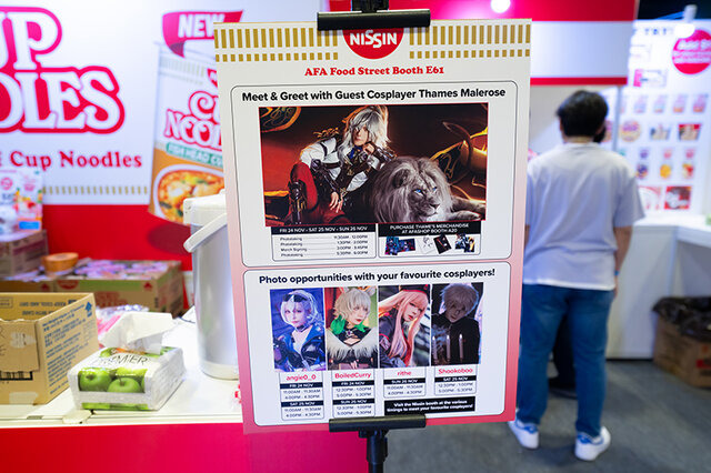 日本でもeスポーツチームのスポンサーや大会協賛に名を連ねる日清食品ですが、シンガポール日清は定期的に同イベントに出展しています。また、有名なコスプレイヤーを起用した撮影会も開催していました。アニメやゲームファンが日本食を好きになってくれる割合が高いから、出展して訴求しているのでしょう。
