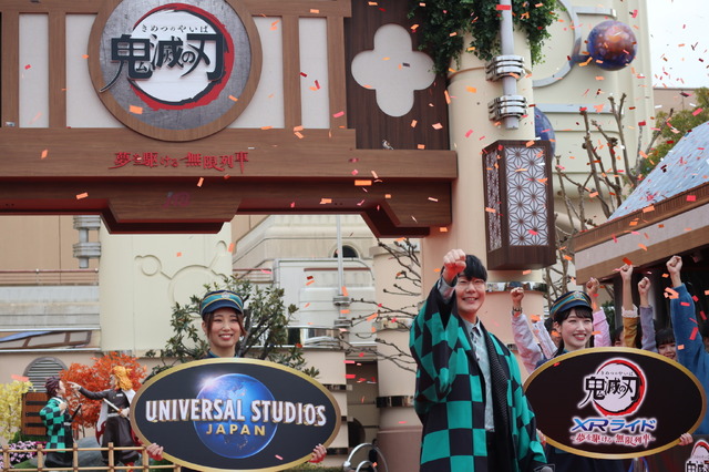 1月31日(水)にはXRライドの復活を記念し、スペシャルイベントが開催。セレモニーとトークイベントには主人公・竈門炭治郎を演じた花江夏樹さんが登場し、XRライドや特別フードの楽しみ方、さらに吹き替え秘話などを語ってくれた。