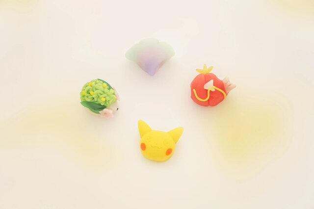 上生菓子では、ピカチュウ・コイキング・シェイミ(ランドフォルム)・オドリドリ(まいまいスタイル)が表現されています。
