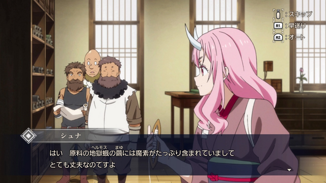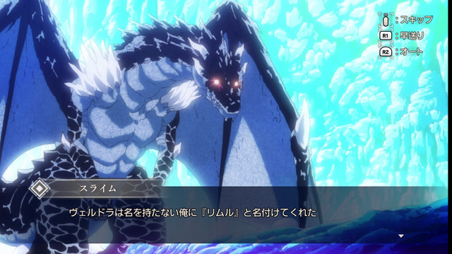 その後は暴風竜ヴェルドラとの出逢い、牙狼族(ガロウゾク)・子鬼族(ゴブリン)・ドワーフを仲間に加えての村づくり、シズさんをめぐるエピソードと人間への擬態化能力の獲得。それら序盤の展開をダイジェストで紹介しつつ、エイトビット制作のオープニングアニメーションを挟んで本格的なチュートリアルへと進みます。