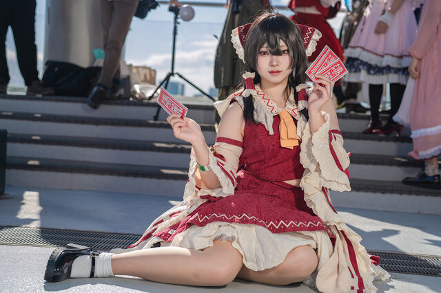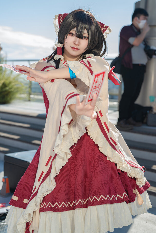 爽やかな秋空の下、イベントの花形の一つである「コスプレ」コーナーも大盛況となりました。本稿ではイベントに参加した美女レイヤーたちの中から、主役の霊夢・魔理沙をはじめ人気キャラのコスプレをお届けします。