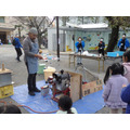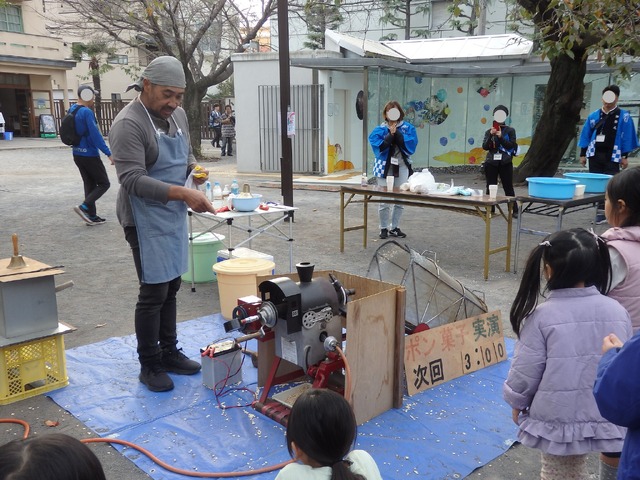 そして、子どもたちの目を引いていたのがポン菓子の実演だ。お菓子を作る機械がくるくると回り、一定の気圧になるまで、ポン菓子がどうやってできるかをおじさんが話しかけて説明する。まだかまだかと子どもから大人まで待ちかねていると、3、2、1とカウントが始まり、「ポンッ!!」と破裂音が公園に響き渡った。出来上がったポン菓子の味は、あったかくほんのりした甘さが、やはりどこか懐かしかった。