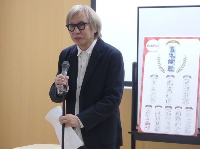 授賞式には、審査委長を務めたしりあがり寿先生、豊島区長・高際みゆきさん、一般社団法人MANGA総合研究所 副所長(理事)・山内康裕さん、マンガ評論家の中野晴行さんらが登壇した。