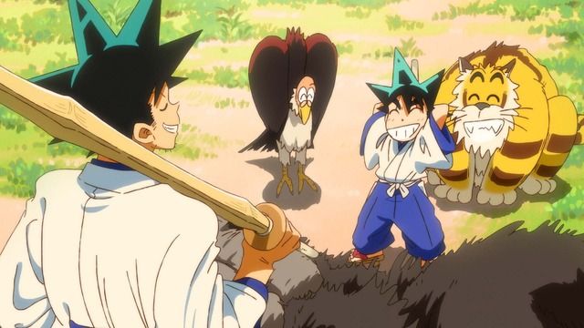 人、動物、鬼、個性的なキャラクターたちが画面から飛び出しそうな勢いで暴れ回ります。真剣勝負もギャグも満載で目が離せない、あっという間の30分です。