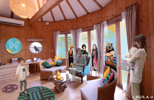 【絆のコクーン】では、「巡る、絆の物語」をコンセプトに、竈門炭治郎たち4人の仲間が紡いだ旅路と絆をテーマに装飾する。(最大3名で利用/料金:65,138円/名~(夕・朝食付き、税サ込))