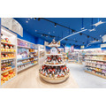 伝説のアニメーターたち“ナイン・オールド・メン”が描いた、ディズニーキャラクターのアートを用いた店内はファン必見だ。さらに、ダンボやプーさんのぬいぐるみフォトスポットも用意されており、たくさんのディズニーキャラクターに囲まれながら買い物を楽しめる。