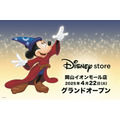 新店舗は、ディズニーの魔法で命を吹き込まれた絵本をイメージした、温かみを感じられる空間が広がる。エントランスでは、「魔法使いの弟子」に扮したミッキーマウスのスタチューがゲストを迎えてくれる。