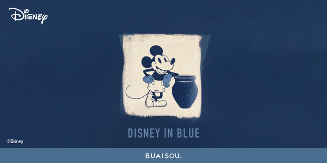 伝統を重んじながらも現代的な技術を駆使したものづくりが注目を集める藍師・染師BUAISOUによる監修のもと、天然藍のさまざまな藍色の濃淡にインスピレーションを得て、ミッキーマウスと仲間たちをモチーフにした「Disney in Blue」。