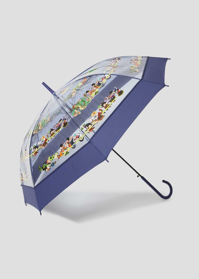 カプセルコーポレーションのロゴと悟空たちの宇宙船がリバーシブルであしらわれた「カプセルコーポレーション」デザインのバケットハット、本作のキャラクターがぐるりと配置された「キャラクターズ パターン」デザインのビニール傘なども取り揃えられた。