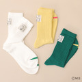 「ちびまる子ちゃん ギンガム刺繍ショートソックス」「コジコジ マルチボーダー刺繍ソックス」は、それぞれの柄のソックスにキャラクターの刺繍をON。まるちゃんは大きなリボンがキュート。コジコジは、コジコジを思わせる柄の配色にも注目だ。