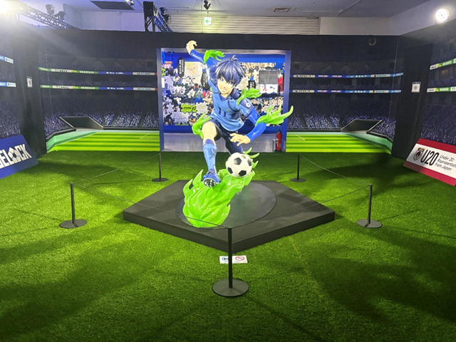 さらに進むと、“エゴい”オーラを纏った凪の等身大立像がお出迎え。後ろには凪の活躍するシーンがたっぷりと展示されており、サッカーの面白さに気付き進化を重ねていく凪の成長を、一緒に駆け抜けるような感覚で味わえるエリアとなっています。