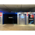 奥に進むと、3面の超巨大スクリーンで「“ブルーロック”イレブン vs. U-20日本代表戦」の名シーンを見ることができます。視界いっぱいに広がる大迫力の試合シーンに、足元の人工芝の床や立体音響まで加わって、臨場感がすごい! 筆者も気が付けば、ラストまで夢中で見てしまいました。