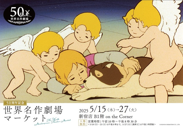 『フランダースの犬』『あらいぐまラスカル』『赤毛のアン』など海外の児童文学を原作・原案とした「世界名作劇場」は2025年で50周年を迎えた。京王百貨店新宿店では5月15日より、新作アイテムなど約200点のグッズを販売する記念イベント「50周年記念 世界名作劇場マーケット」を初開催する。