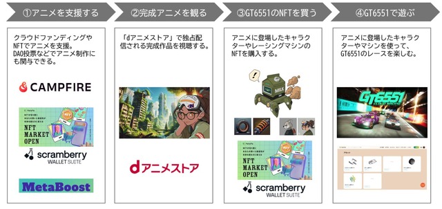 登場キャラやマシンは「MetaMe」内で展開されるNFT連携型のブロックチェーンレーシングゲーム『GT6551』で実際にプレイできるなど、アニメ・メタバース・ゲームが連動するプロジェクトとして展開する。「アニメDAO」が拓く、アニメ制作の新常識の盛り上がりが注目される。