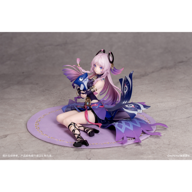 オープンワールドアクションRPG『原神』より、「シトラリ・白星黒曜Ver.」1/8スケールフィギュアが登場。チャームポイントともいえるツンデレ顔の瞬間を切り取り、イツパパを抱きしめながら紫の丸い絨毯に腰を下ろした姿を立体化しています。