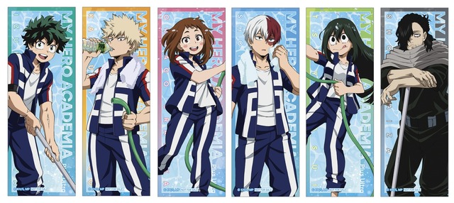 このたびのグッズはそんな本作より、緑谷出久、爆豪勝己、麗日お茶子、轟焦凍、蛙吹梅雨、相澤消太ら6キャラクターがプールを掃除する、夏らしい描き下ろしビジュアルを使用したもの。