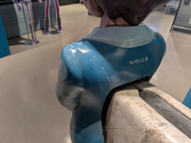 ひときわ目を引くのが本作2話に登場する車掌さん型ロボットのO.T.A.M.(オータム)ちゃんの等身大人形だ。作中ではかなり古い型であると説明されるが、その古さを再現した絶妙な汚し具合で、本当に年季が入っているように見える。