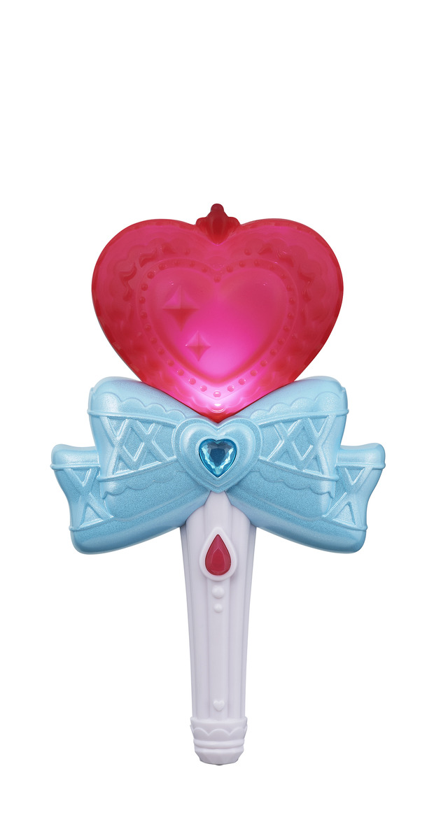 「プリキュアアイドルハートリボン」はボタンを押すと、「キュアアイドル-アイドルハートリボンスタイル-ステージ曲」と、映画ステージ曲「♪HiBiKi Au Uta♪」の2曲が流れる。別売りの「くるくるまわして♪キラッキランリボンバトン」にセットすると、映画の特別なキメ技を放つこともできるようだ。価格は3,000円(税別)だ。