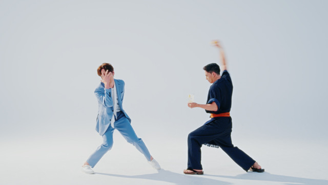 「甘くない檸檬堂「秘技・南半球しぼり『秘技の極意』」篇」と題されたこのWEB動画は、二代目「甘くない檸檬堂 無糖にごりレモン」の鍵を握る果汁絞りのテクニック「秘技・南半球しぼり」について、それを極めるために奮闘する二代目檸檬堂店主に扮する市原に、宮野が教えを授けるもの。