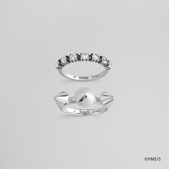NANA ー 大崎ナナモデルのリングセットは、薔薇の棘を想起させる「スパイク」をあしらったリングと、キュービックジルコニアのラインストーンのリングの2点セット。単体ではもちろん、レイヤードして雰囲気を変えても楽しめる。