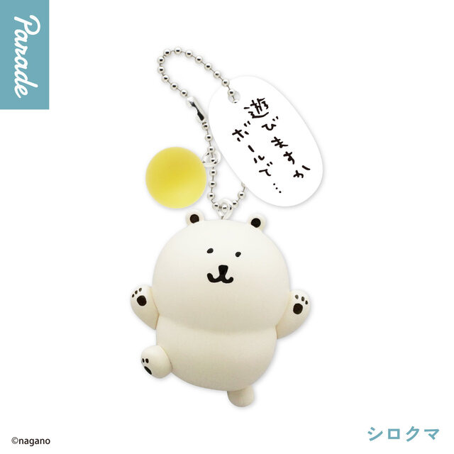 ラインナップはシロクマ、タコクラゲ、オオサンショウウオ、ペンギン、カワウソ、アザラシの全6種類。「遊びますかボールで…(シロクマ)」や「でもでもだってだって(アザラシ)」など吹き出し付きで、ゆるっとした可愛さがたまらないマスコットとなっています。