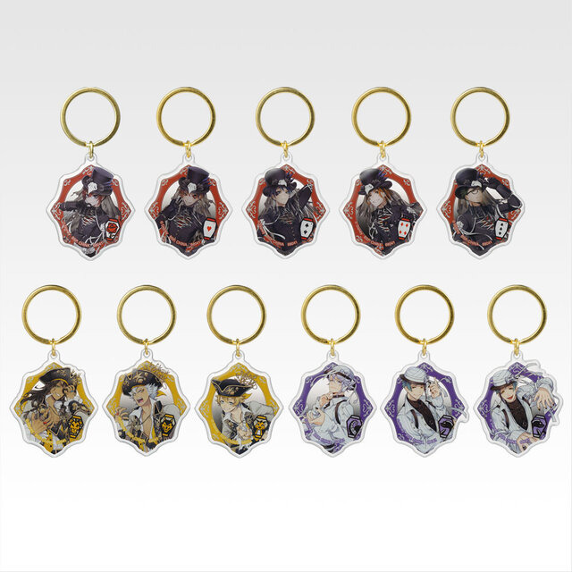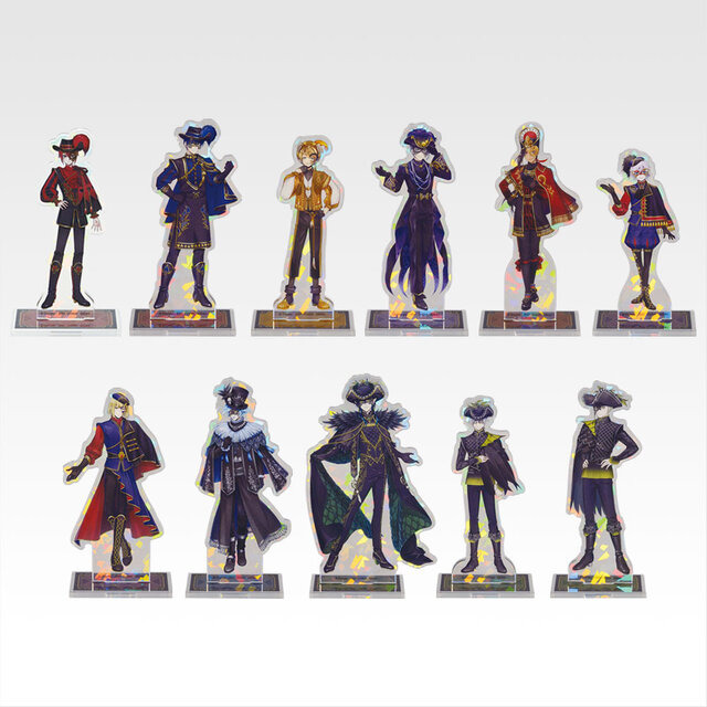 C~D賞にはホログラムアクリルスタンドが登場。それぞれ「グロリアス・マスカレード」と「ステージ・イン・プレイフルランド」の衣装を身にまとった寮生各11種をラインナップ。ホログラム加工で背面がキラキラと輝きます。