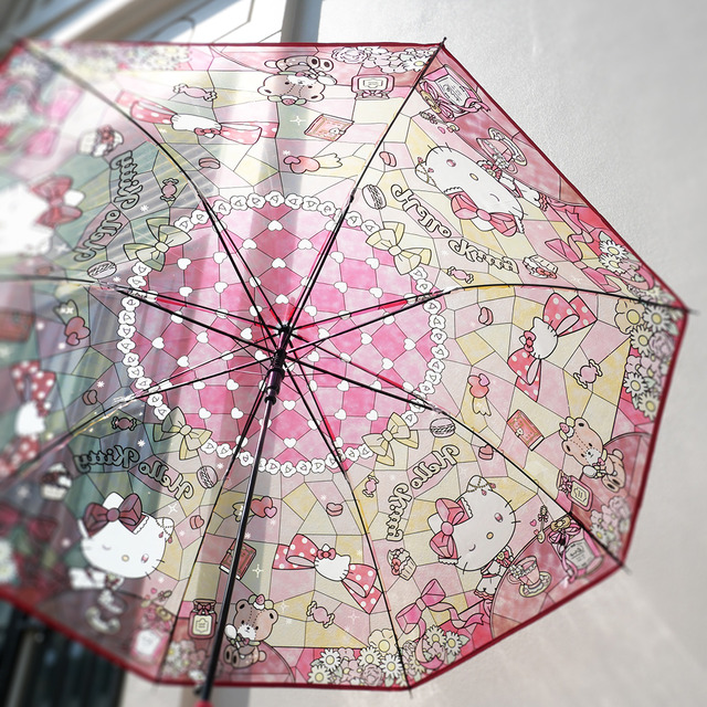傘を広げると、光を透かして浮かび上がるサンリオキャラクターたち。まるで本物のステンドグラスのようにきらめく傘は、日常の風景に魔法のような彩りを添える。