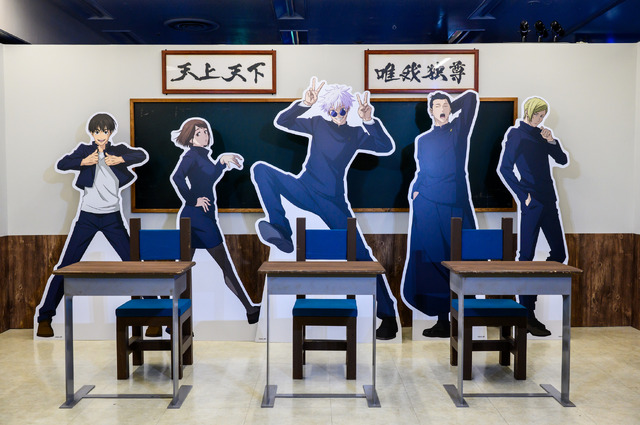 さらに、キャラクターのスタンドパネルが並んだフォトスポットや「渋谷事変」の名シーンを観られるシアターエリア、5周年エリアなど様々な展示を楽しめる。