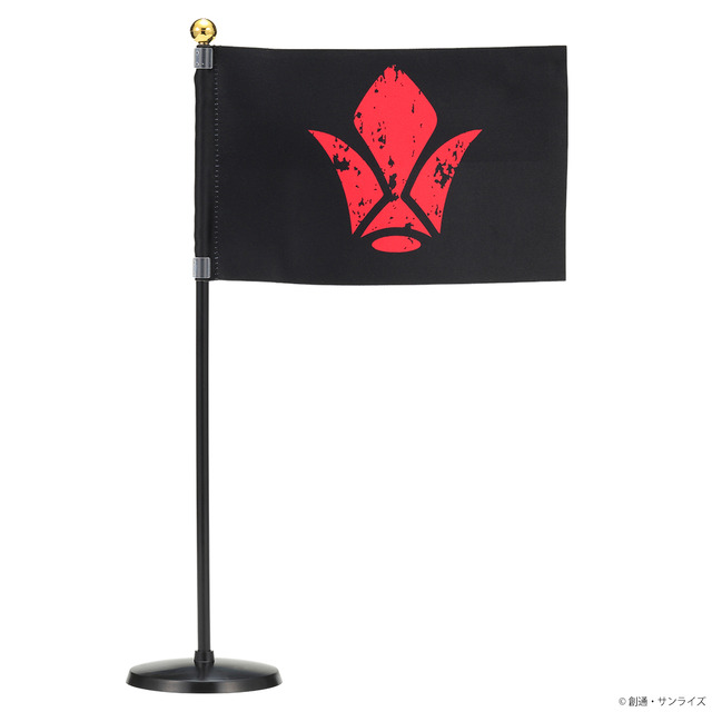 ミニフラッグは鉄華団モチーフ。黒地に赤のコントラストが目を引くデザインとなっている。