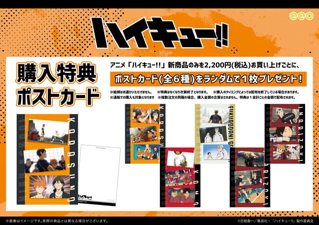 アニメ『ハイキュー!!』の「eeo Store」による新作グッズ各種は、12月21日17時まで通販サイト「eeo Store online」にて先行販売中。2026年2月下旬頃の発送が予定されている。また「ジャンプフェスタ2026」内「eeo Storeブース」での会場販売も実施される。詳細は特設サイトまで。