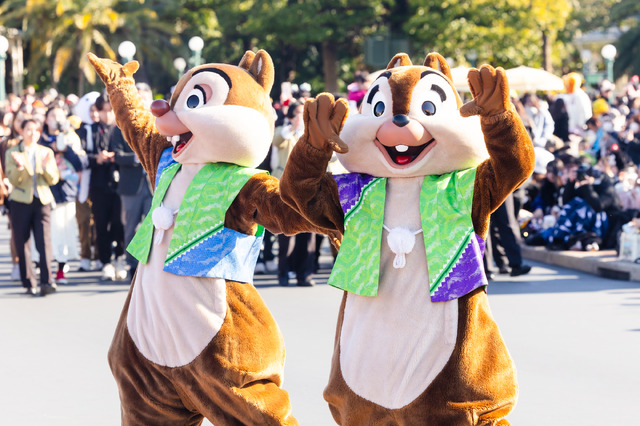 東京ディズニーランドでは、ミッキーマウスをはじめとするディズニーの仲間たちが、日本ならではの和服姿で新年を祝い、華やかな音楽とともに新春のごあいさつをする「ニューイヤーズ・グリーティング」を今年も実施。