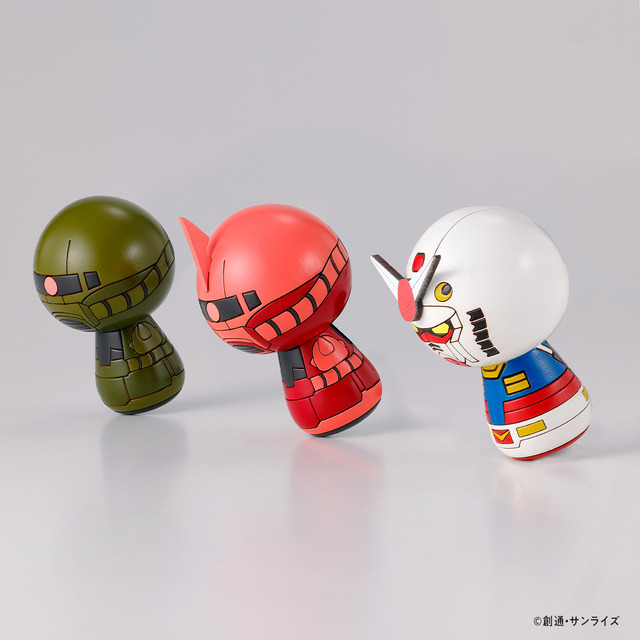 今回のコラボでは、アニメ『機動戦士ガンダム』よりガンダム、シャア専用ザク、量産型ザクの3体が丸っこくて可愛いこけしとして立体化している。それぞれの機体の特徴や細かなデティールが見事に再現されており、小さいサイズながらガンダムの世界観を表現しているといえるだろう。