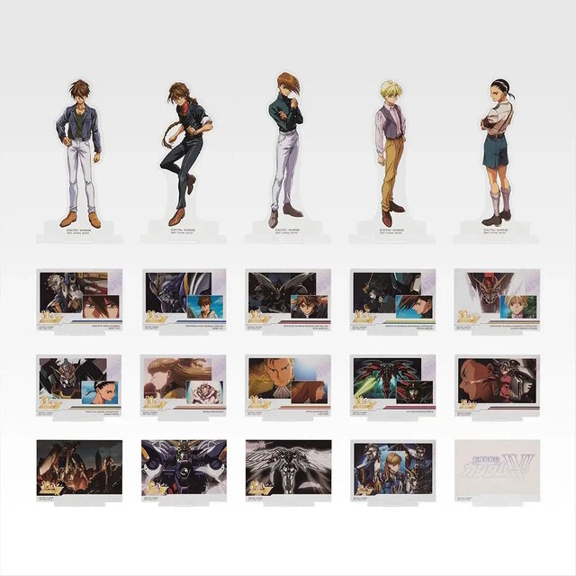 E賞の「MSヘッドマグネット」は、TVシリーズからウイングガンダム、ガンダムデスサイズ、ガンダムヘビーアームズ、ガンダムサンドロック、シェンロンガンダムの5機が登場。この他にもビッグビジュアルスタンド、アクリルスタンドコレクション、クリアポスターがラインナップされています。