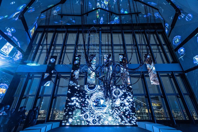 まず入口には、電脳空間を思わせる「巨大電脳ネットワークビジュアライザー “Nerve Net”」を展示。アーティスティック・ディレクターの松山周平による空間演出で、電脳空間へダイブする感覚を味わえる。