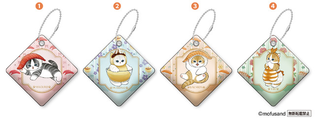 「ビッくらポン!(R)」で当たりが出るともらえる、くら寿司限定の特別な景品には、描き下ろしの限定デザインを使用したグッズをラインナップ。にゃんこたちがくら寿司の人気商品「熟成まぐろ」や「サーモン」、「えび天手巻き(一貫)」などのコスチュームを着たラバーチャームはファン必見のアイテムだ。