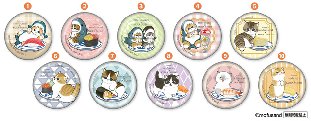 そのほか、にゃんこたちが可愛くデザインされたアクリルステッカーや缶バッジも。くら寿司の商品と一緒ににゃんこたちが描かれている、コラボならではオリジナルグッズとなっている。