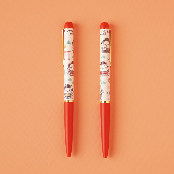 竹炭焙煎珈琲缶とボールペンは、舞妓さん姿で楽しそうなちいかわたちの限定デザイン。お土産にも喜ばれること間違いなしだ。