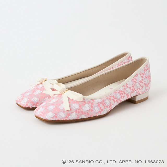 「西陣織バレエシューズ」は、ダイアナで好評のキレイ見えバレリーナをベースに小さな桜モチーフのオリジナルスタッズをリボンにプラス。淡いピンクとアイボリーの柔らかなカラーで、足元に軽やかさを演出する。