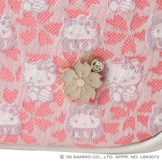 「西陣織ミニショルダーバッグ」は、さり気なく高級感をプラスする小さな桜モチーフのオリジナルスタッズがポイント。ピンクとシロの優しいカラーリングのミニマムなバッグは、日常に使いやすい仕様となっている。