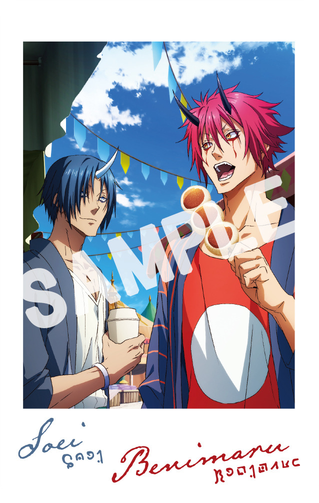 また、3月6日(金)より第2弾入場者特典の配布が決定。【魔国連邦(テンペスト)】の開国祭を終えて、思い思いに束の間のバカンスを満喫するリムルたち一行と、ゴブタと巫女・ユラがカイエン国で親しげに話すシーンを切り取った、蒼海の旅の思い出のような「描き下ろしフォト風カード(全4種ランダム)」。特別に描き下ろされた、劇場でしか手に入らない特典に注目だ。