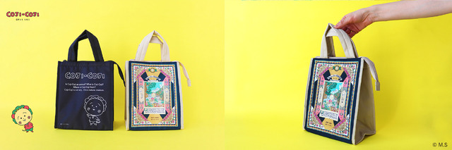 お弁当やステンレスボトルがすっきり収まる縦長フォルムの「保冷保温バッグ」。メインバッグと一緒に持っても邪魔になりにくいサイズ感も魅力。モノトーンで表現したコジコジが印象的なデザインと、メルヘンの国の日常のワンシーンをクラシカルな雰囲気で表現した「Wonders About COJI-COJI」の2種類が展開されている。