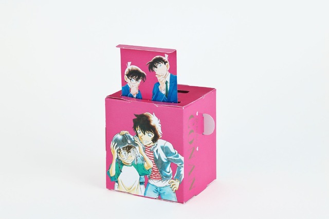 貯金箱は500円玉が20枚入るサイズで、合計1万円が貯められる。500円玉を入れると、「20」ポーズをしているコナンと蘭が飛び出す仕掛けとなっている。