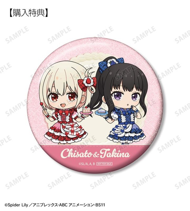 • TVアニメ『リコリス・リコイル』予約購入特典「錦木千束&井ノ上たきな ちびキャラ スイーツ衣装ver. 75mmグリッター缶バッジ」