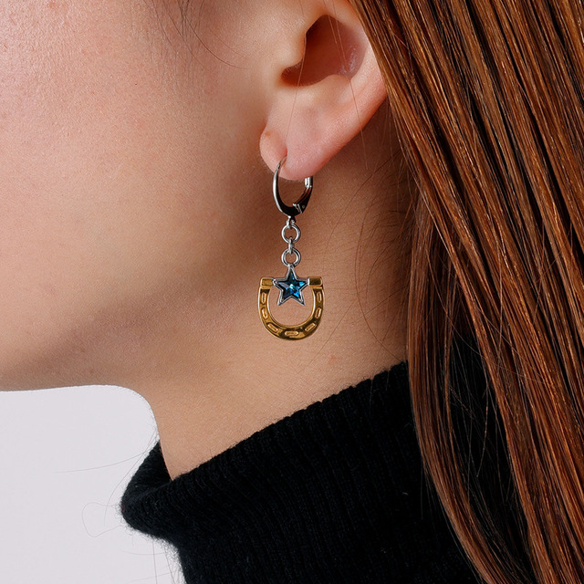 ジョニィモデルはトレードマークでもある蹄鉄と星をデザインに落とし込んだペンダント・ピアス・イヤリング。緻密に造形されたゴールドの本体に、澄んだクリスタルガラスが青々と煌めく存在感溢れるアイテムとなっている。